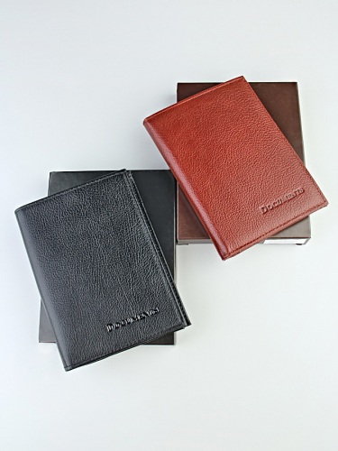 Обложка для автодокументов и паспорта с визитницей и кошелек с кнопкой, выполнена из натуральной кожи с тиснением. Изделие раскладывается пополам. Внутри два потайных кармана, отделение для паспорта. В комплекте съемный ПВХ вкладыш для автодокументов блок из шести прозрачных файлов из пластика, один из которых формата А5, два боковых кармана. Обложка для автодокументов поможет сохранить их внешний вид и защитить от повреждений.