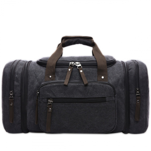 На передней стенке сумки находится отдел на молнии и крепление на выдвижную ручку чемодана.