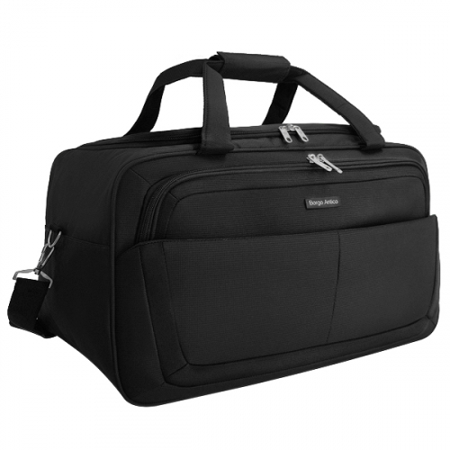 На передней части сумки находится дополнительный отдел на молнии, а на спинке - крепление на выдвижную ручку чемодана.