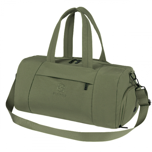 На одной из боковых сторон сумки располагается карман на молнии; на другой - отдел для обуви на молнии.