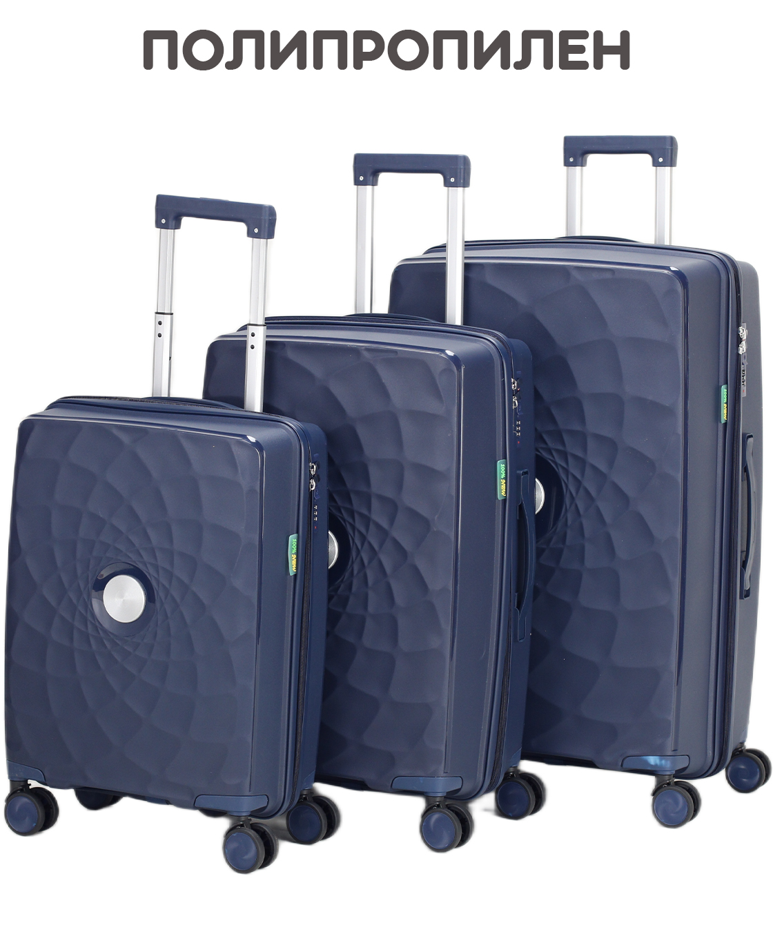 — На среднем и большом чемоданах есть боковые ручки для ношения и боковые ножки, на которые чемодан можно поставить.