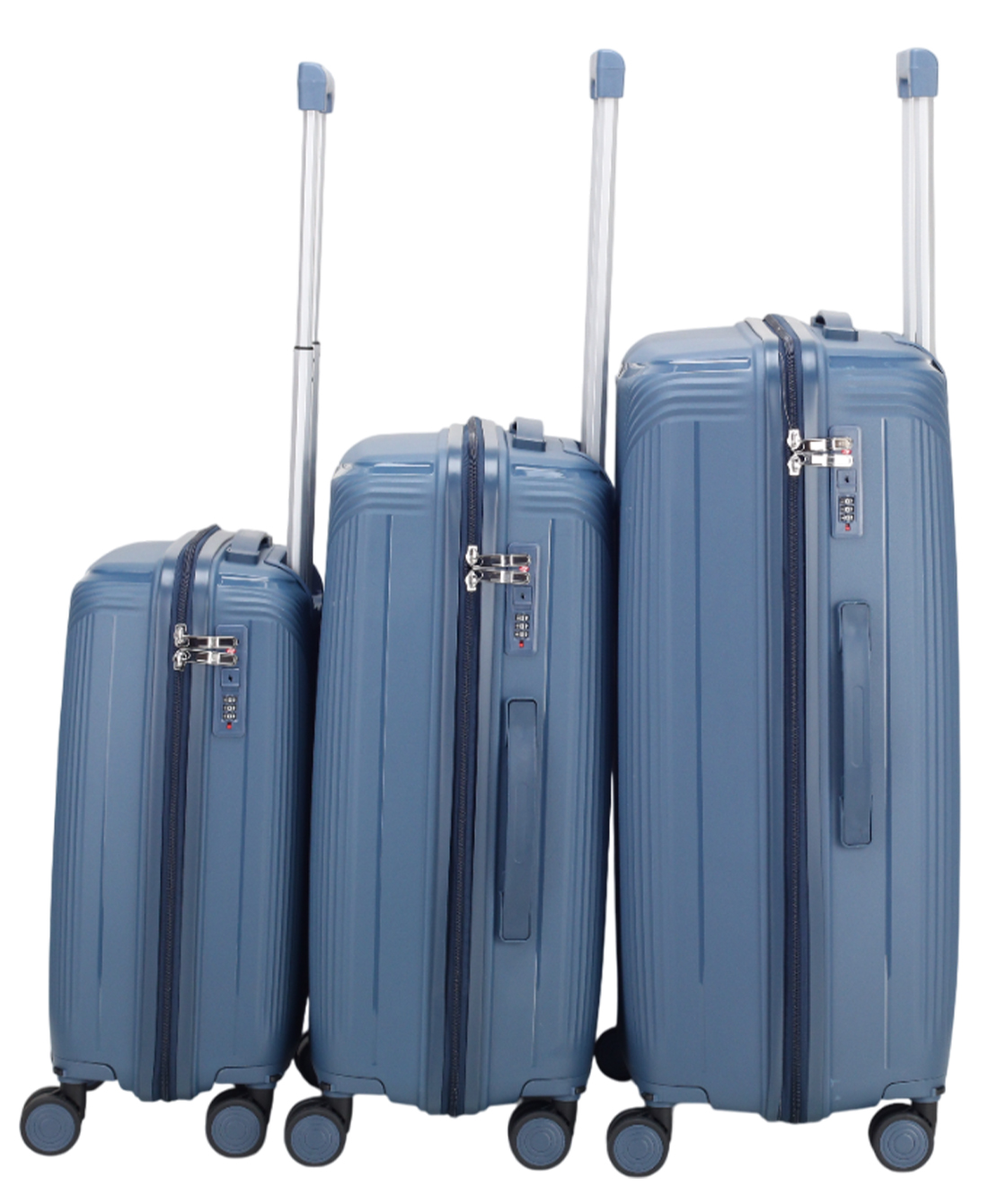 — На среднем и большом чемоданах есть боковые ручки для ношения и боковые ножки, на которые чемодан можно поставить.