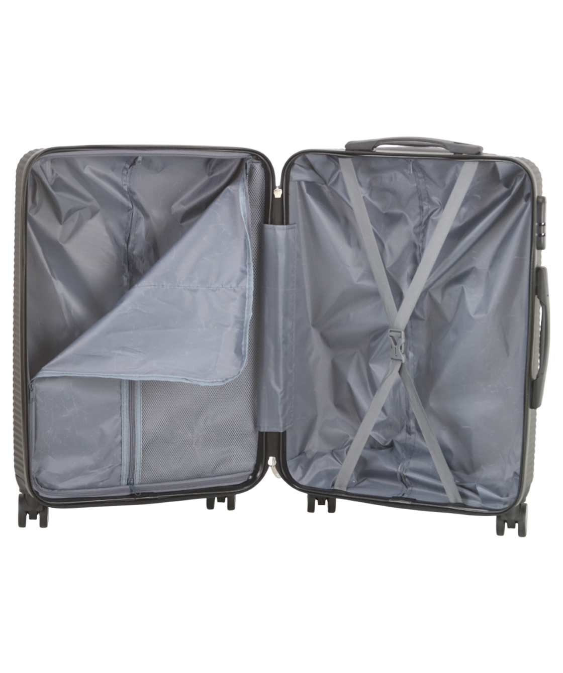 — Одно отделение имеет тканевую перегородку, которая закрывается на молнию, второе отделение имеет ремни для фиксации багажа.