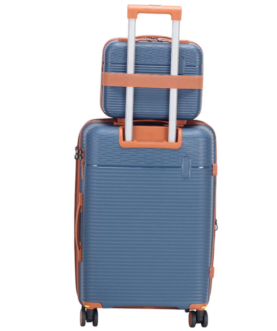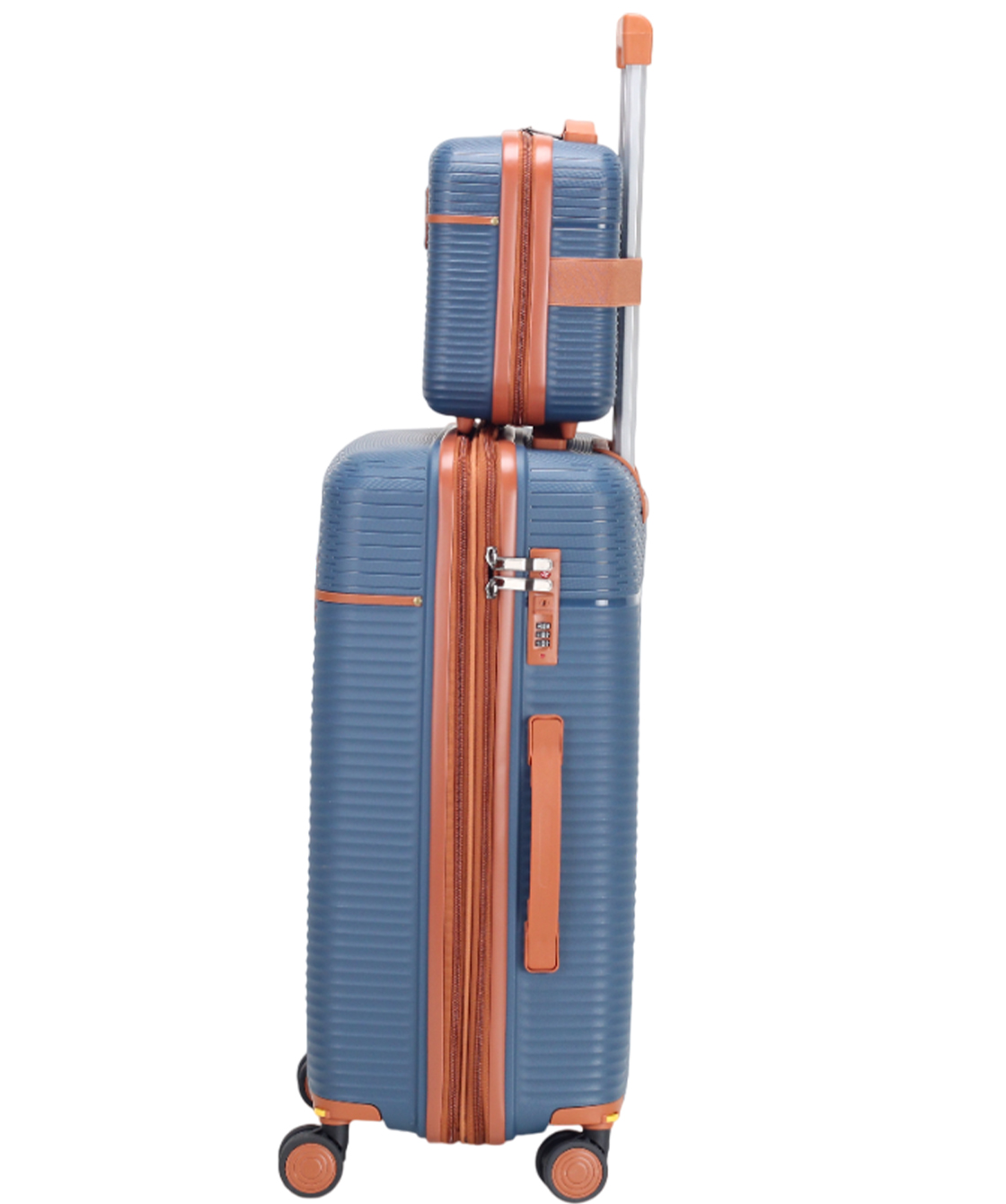 — Чемодан оснащён 4-мя полиуретановыми колесами на скользящих подшипниках, которые вращаются на 360 градусов.