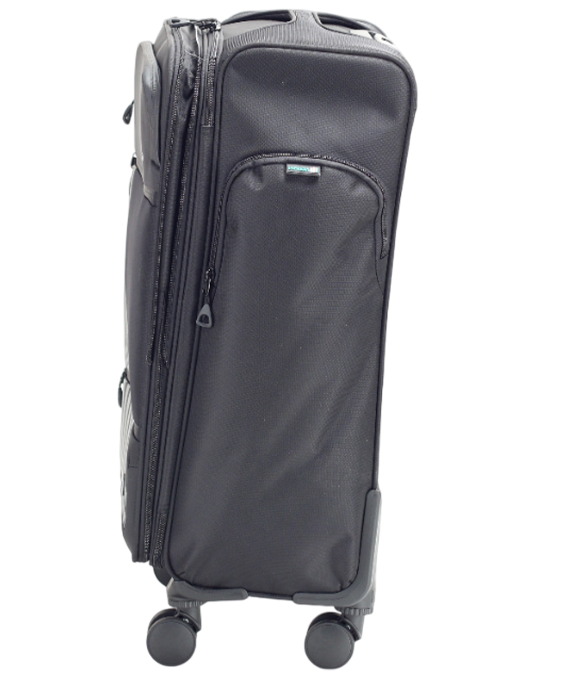 — Чемодан имеет наружный боковой карман, который закрывается на молнию.