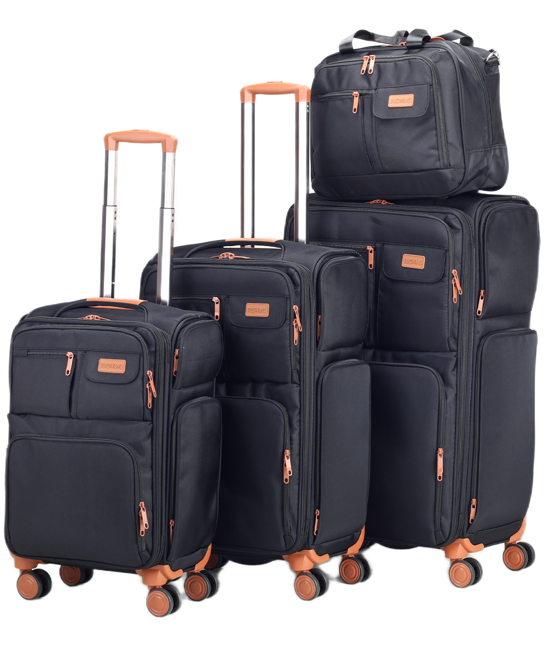 — Чемодан оснащен четырьмя полиуретановыми колесами на скользящих подшипниках, которые вращаются на 360 градусов.
