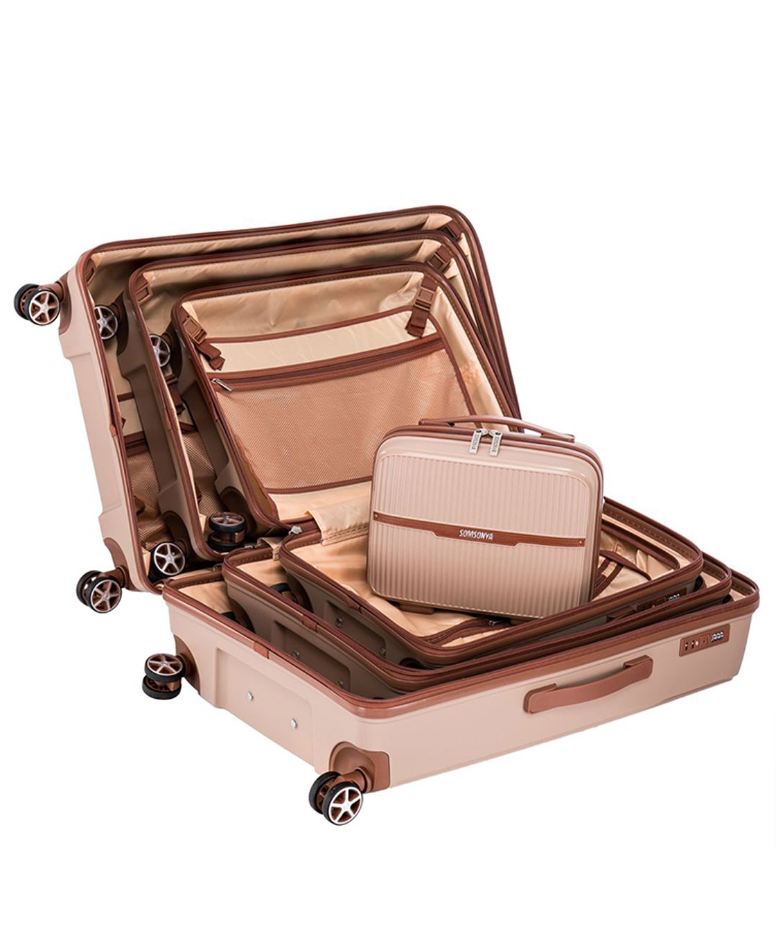 Чемодан премиум линейки SOMSONYA изготовлен из высококачественного полипропилена и имеет следующие отличия от чемоданов бюджетной линейки из ABS-пластика :