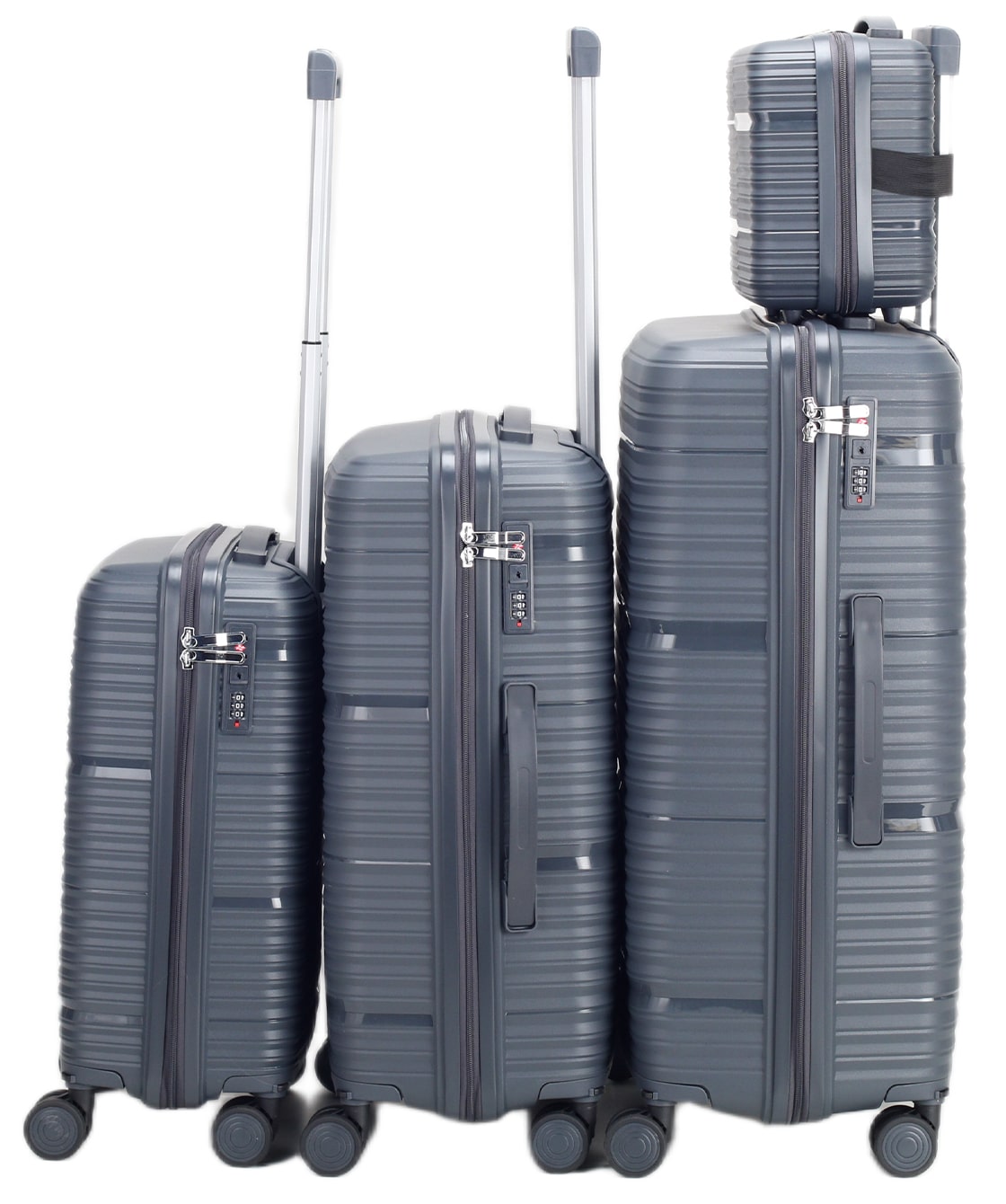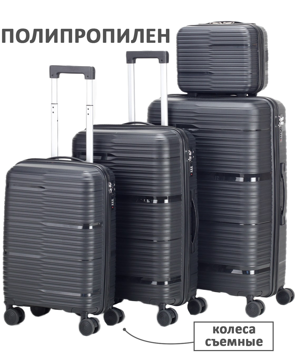 — На среднем и большом чемоданах есть боковые ручки для ношения и боковые ножки, на которые чемодан можно поставить.