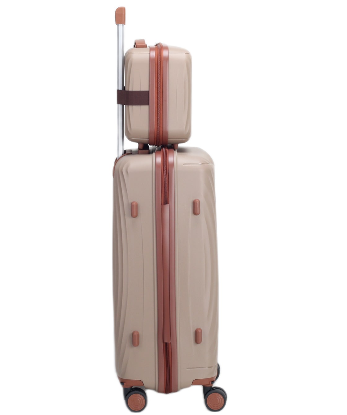 — На среднем и большом чемоданах есть боковые ручки для ношения и боковые ножки, на которые чемодан можно поставить.