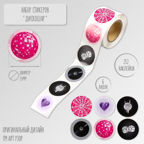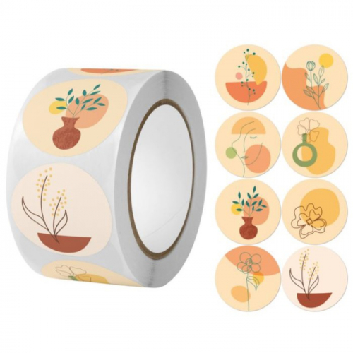 Наклейка бумага «Абстракция. Цветы», d=2.5 см, 500 шт. в рулоне, 3×6.5×6.5 см