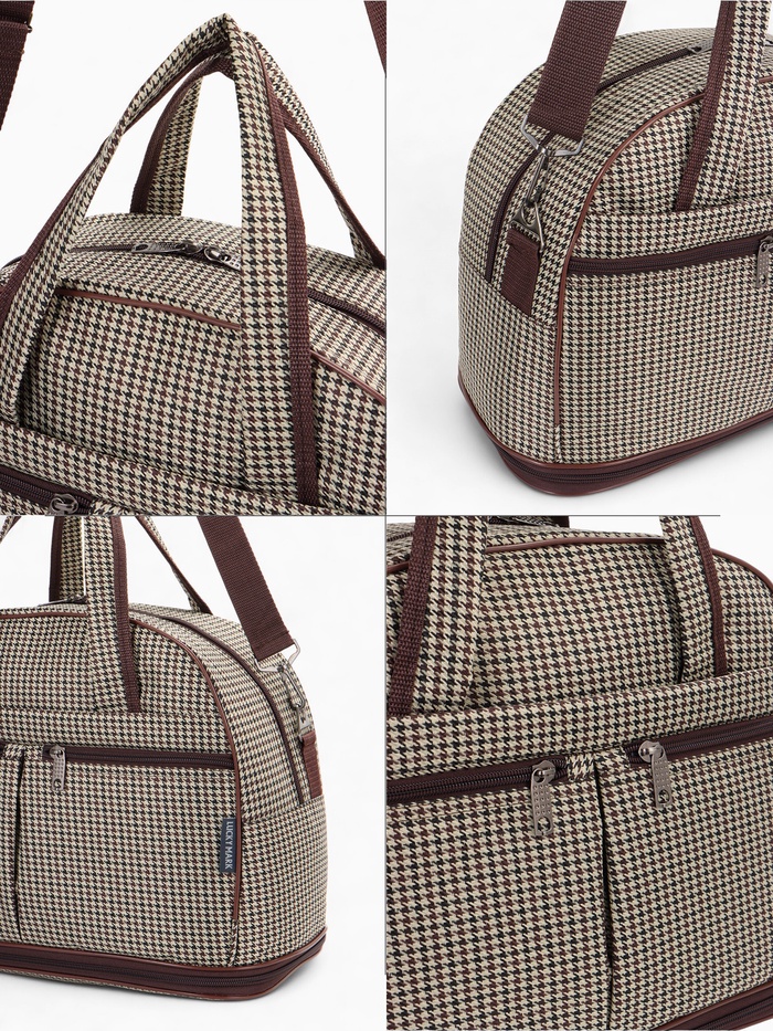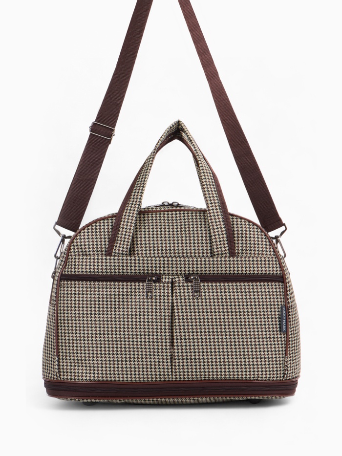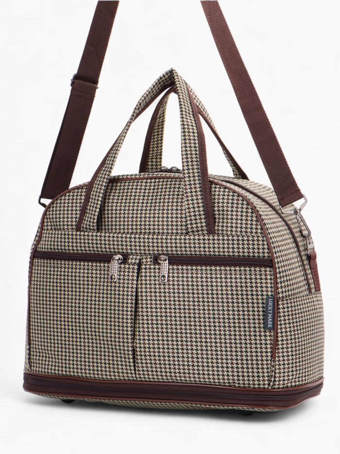 Сумка дорожная Lucky Mark на молнии, 3 наружных кармана, с увеличением, длинный ремень, бежевый/коричневый