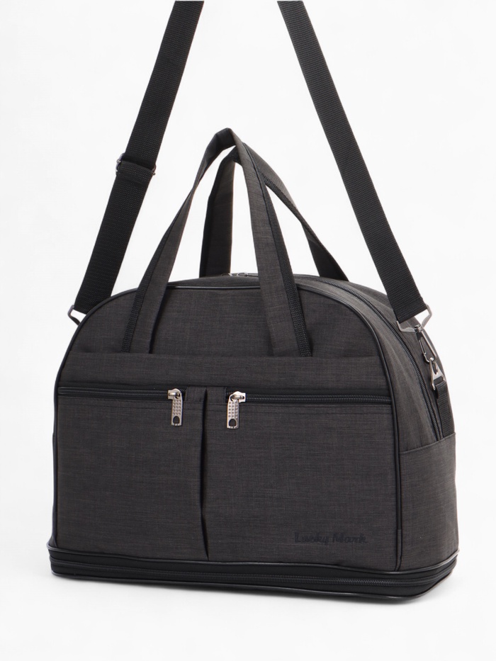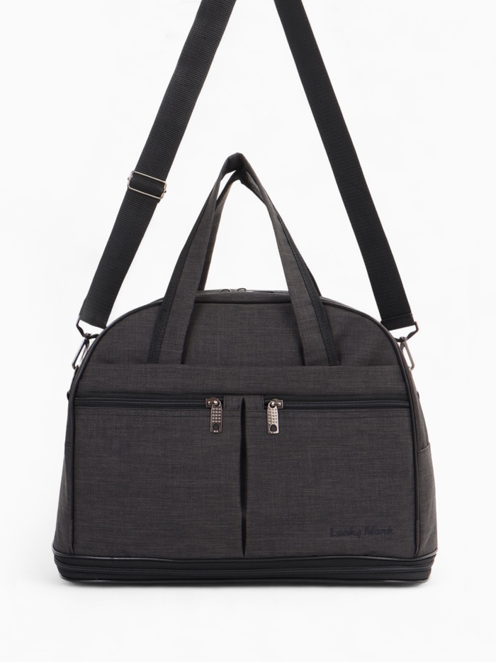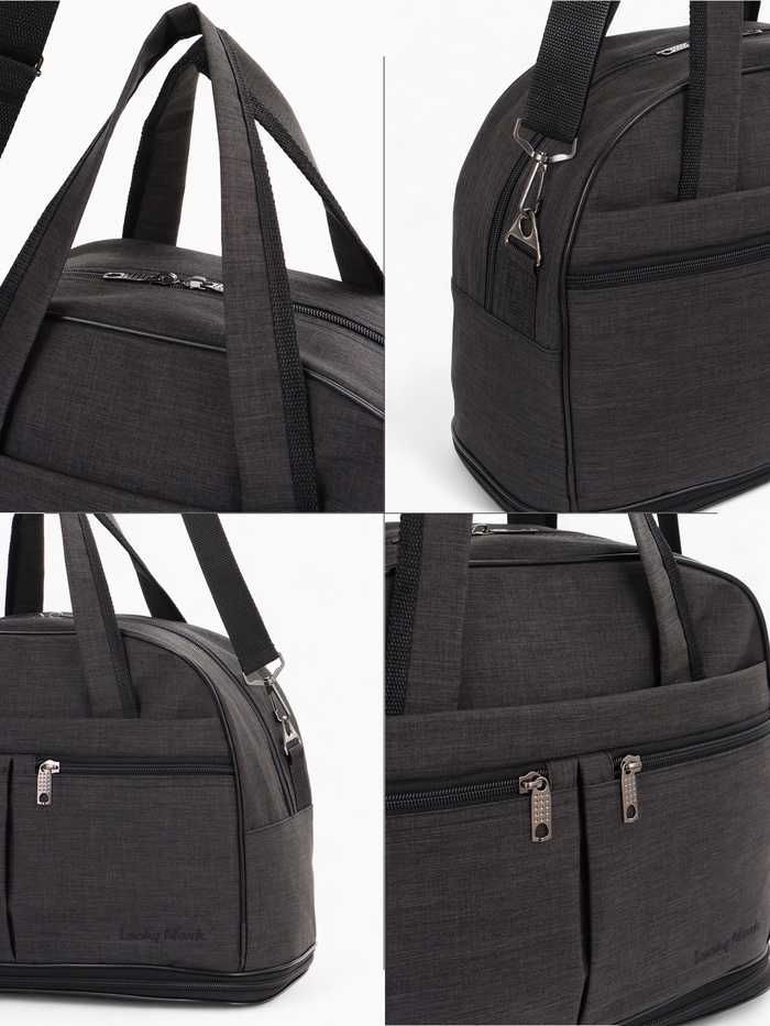 Сумка дорожная Lucky Mark на молнии, 3 наружных кармана, с увеличением, длинный ремень, графитовый