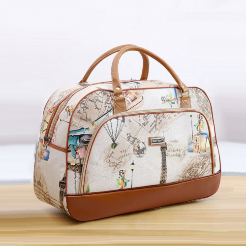 Стильная дорожная сумка из прочной экокожи с ярким декоративным принтом.