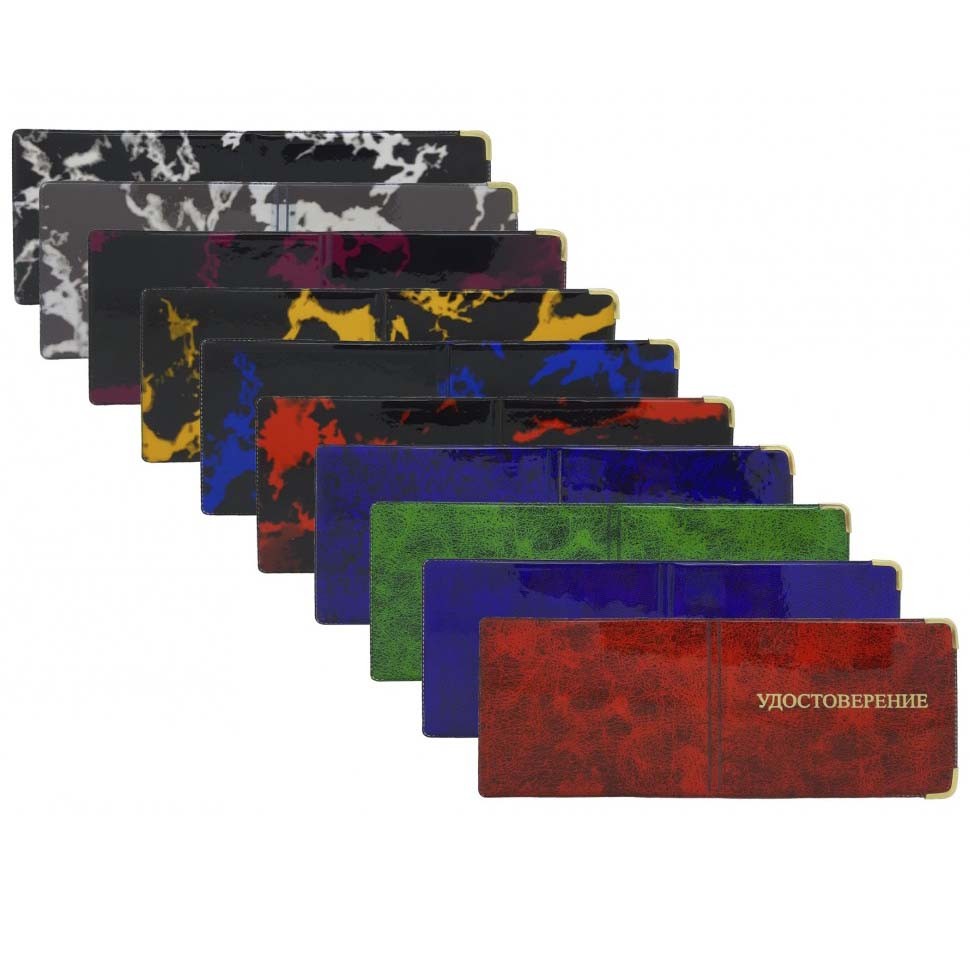 Обложка для удостоверения изготовлена из ПВХ глянцевая с металлическими уголками.
