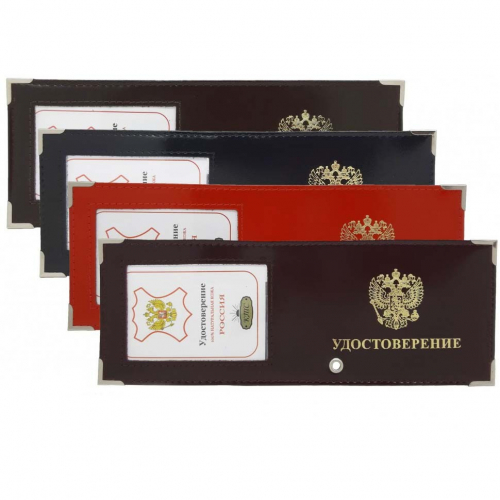 Обложка на удостоверение с окошком изготовлена из натуральной кожи. Приятная на ощупь текстура, на обложке тиснение, внутри прозрачные клапаны. Благодаря обложке документы будут защищены от пыли, изломов, влаги.