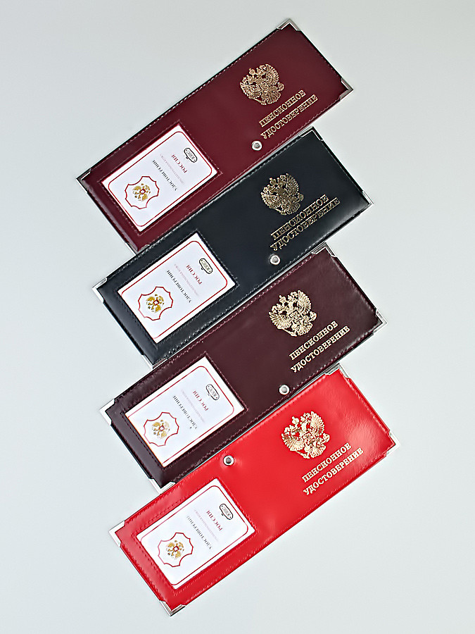 E-042 Обложка "Пенсионное удостоверение" с окошком (нат. кожа)