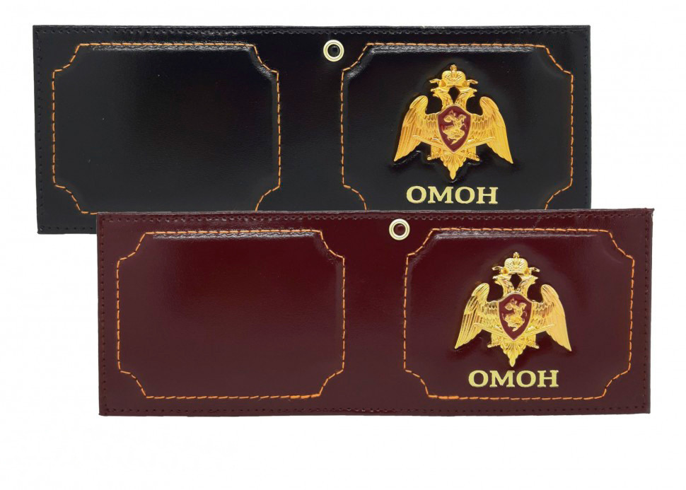 E-065 Обложка для удостоверения "ОМОН" с металл. гербом (нат. кожа)