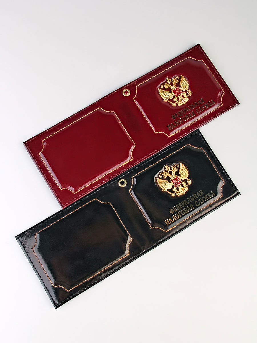 E-077 Обложка на удостоверение "Федеральная налоговая служба" с металл. гербом (нат. кожа)