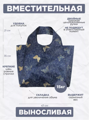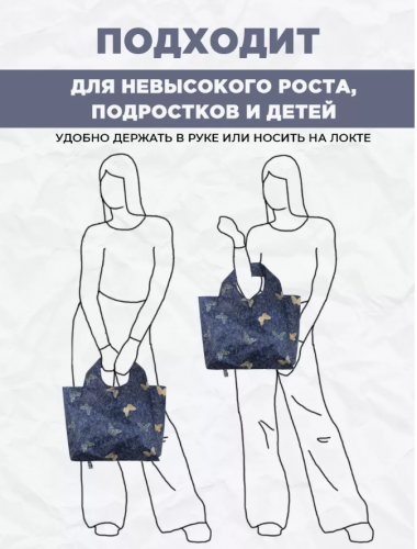 Широкие удобные ручки. Можно носить в руке и на локте.