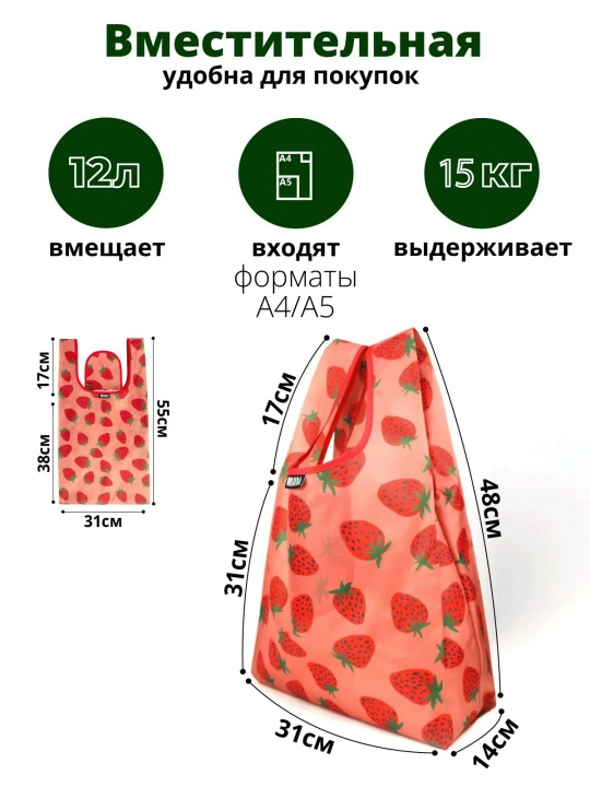 Достаточно вместительная, удобные ручки, в кармашек можно положить мелкие покупки, чтобы они не затерялись, либо что-то еще)))