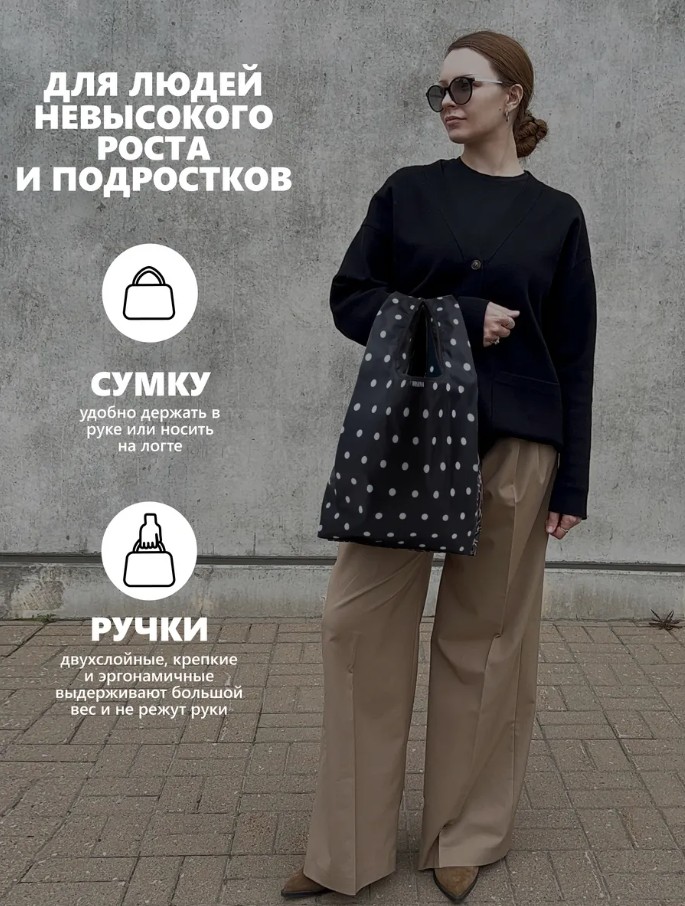 Ручки удобные, широкие, двойные, длина позволяет надеть на локоть.