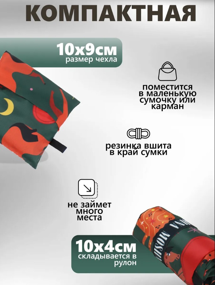 Компактная: легко складывается в рулончик 8*4см и занимает минимум места, фиксируется резинкой, чехол 10*10см в комплекте.