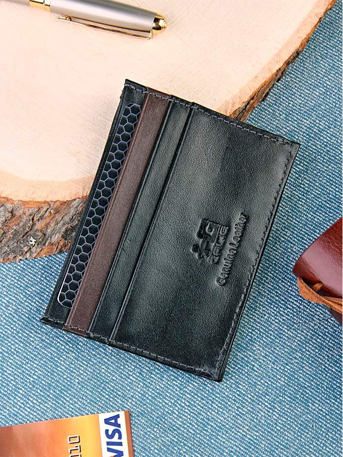 Картхолдер изготовлен из натуральной кожи, благодаря своим компактным размером он легко поместится в кармане.