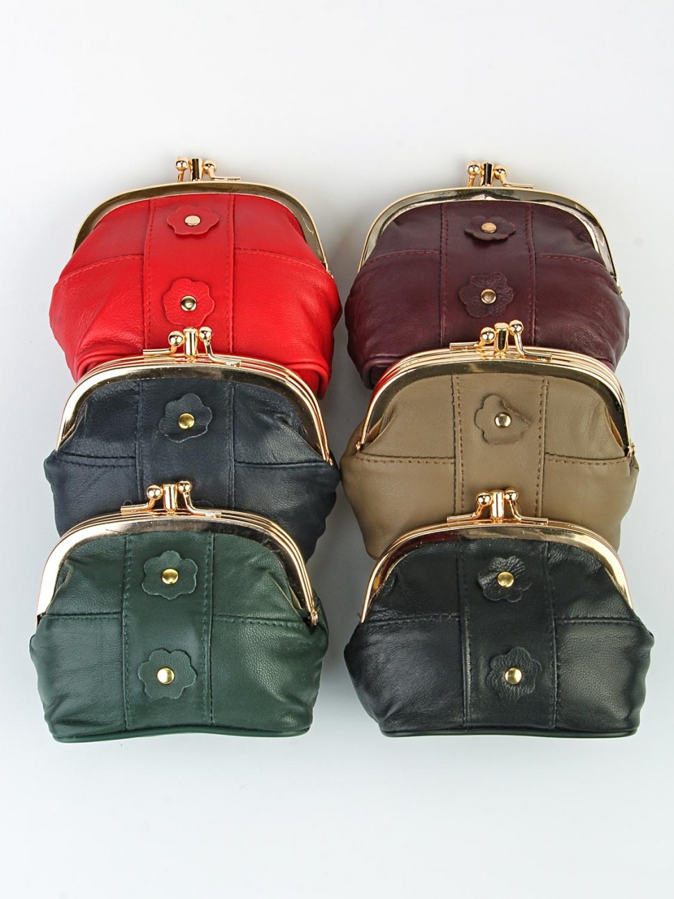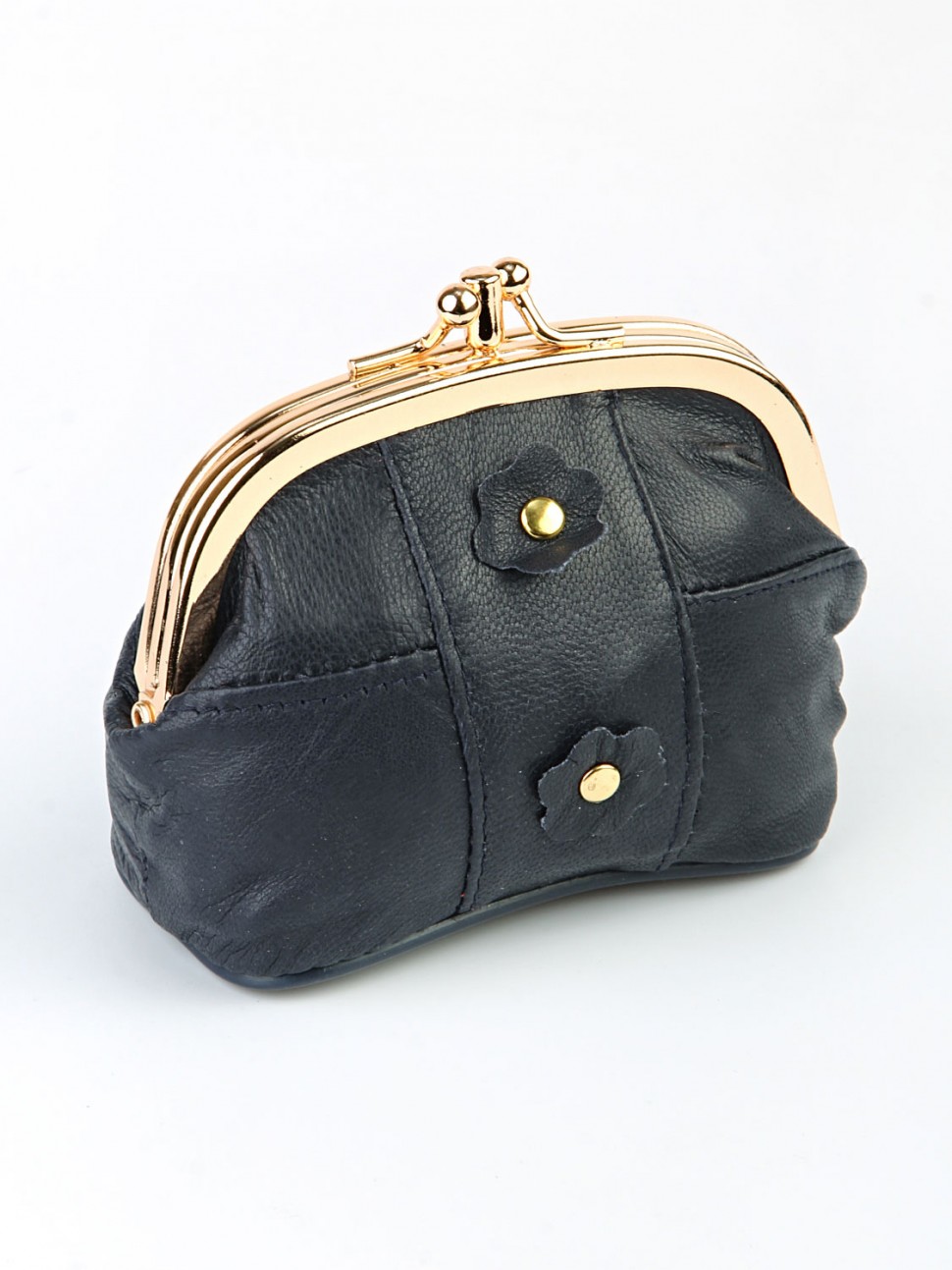 Женский кошелек из натуральной кожи имеет два основных отделения, закрывается на металлический замок-фермуар "поцелуйчики".
