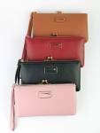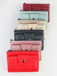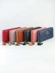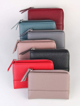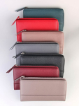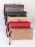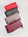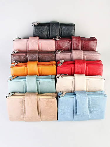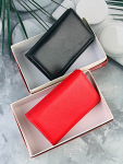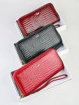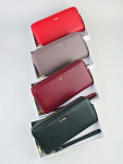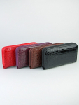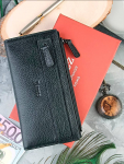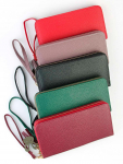 Женский кошелёк из эко-кожи, в который удобно складывать купюры в полную длину, а также множество пластиковых карточек или визиток. Сзади отдельный кармашек на молнии.Укомплектован ремешком для носки на запястье. Весит кошелёк совсем немного. Отличный вариант для подарка близким и любимым.