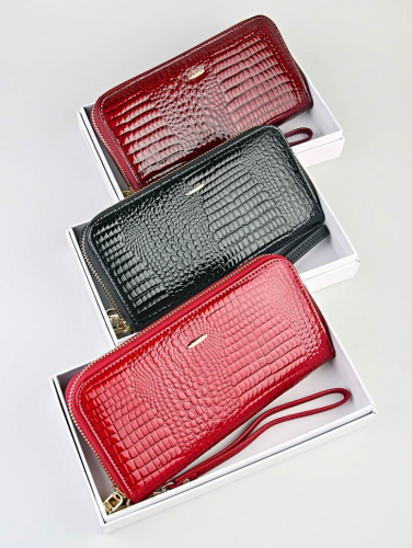 Изделие выполнено из натуральной лаковой кожи. Закрывается на позолоченную металлическую молнию.