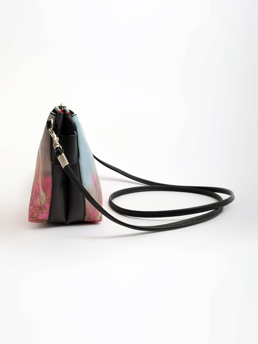 Современный, удобный, клатч выполнен из текстиля, имеет 3 больших отделения. В комплекте идет ремешок из эко-кожи, длинна 1 м 20 см, регулировка ремешка производиться путем разжатия скобы на конце ремня.