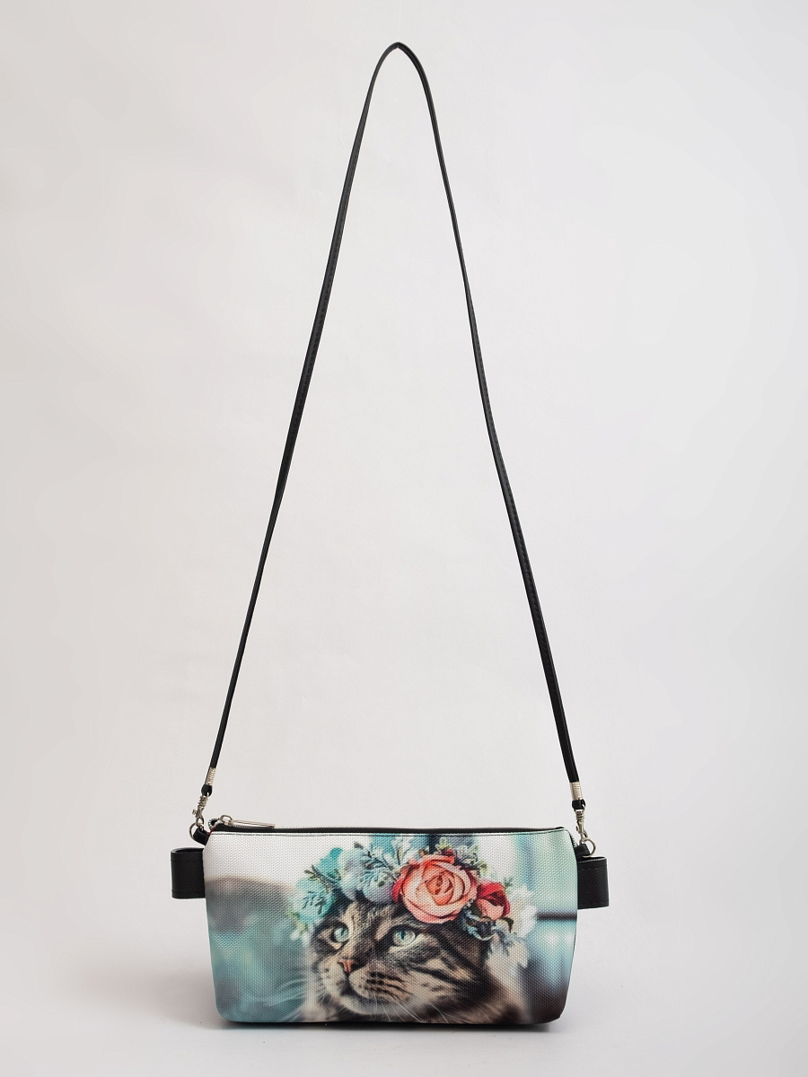 Современный, удобный, клатч выполнен из текстиля, имеет 3 больших отделения. В комплекте идет ремешок из эко-кожи, длинна 1 м 20 см, регулировка ремешка производиться путем разжатия скобы на конце ремня.