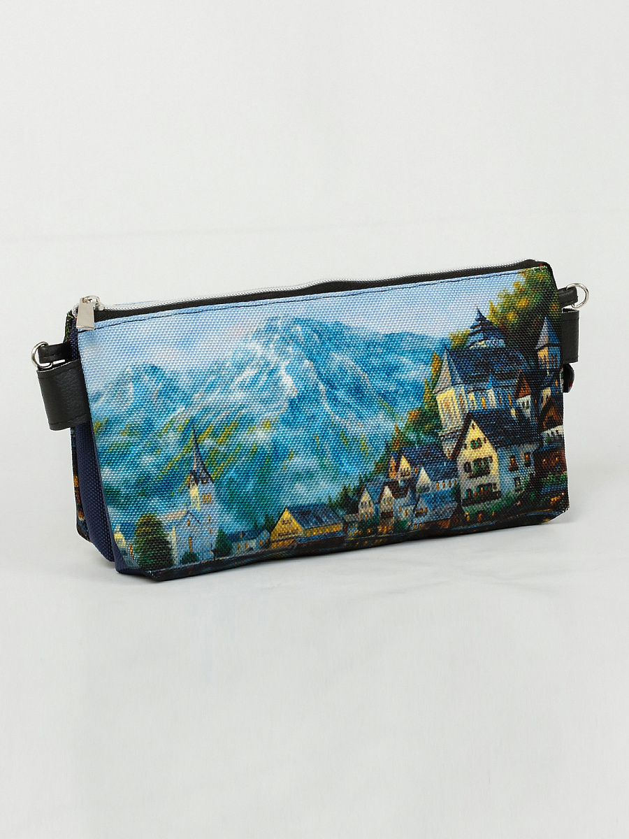 Современный, удобный, клатч выполнен из текстиля, имеет 3 больших отделения. В комплекте идет ремешок из эко-кожи, длинна 1 м 20 см, регулировка ремешка производиться путем разжатия скобы на конце ремня.
