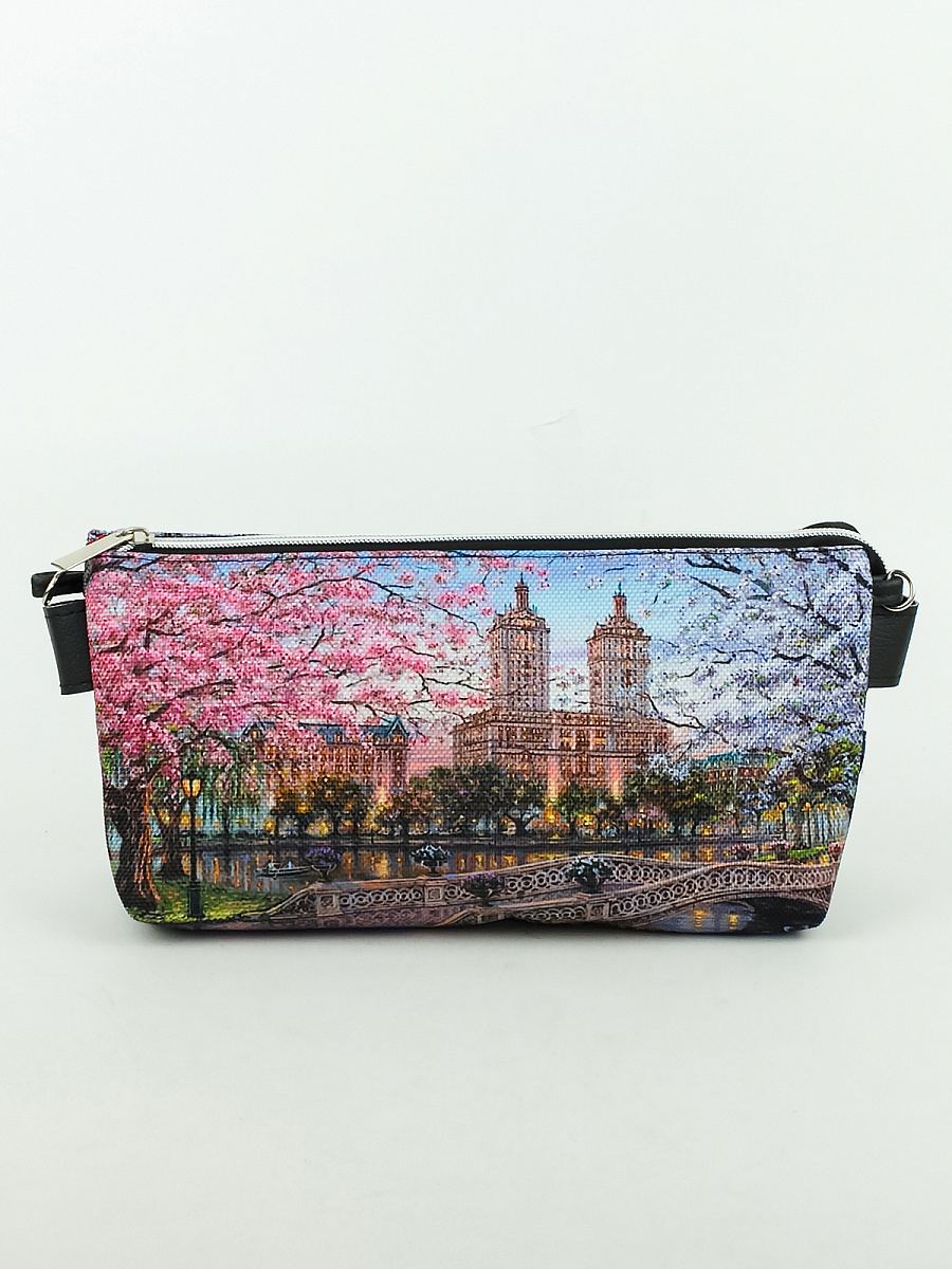 Современный, удобный, клатч выполнен из текстиля, имеет 3 больших отделения. В комплекте идет ремешок из эко-кожи, длинна 1 м 20 см, регулировка ремешка производиться путем разжатия скобы на конце ремня.
