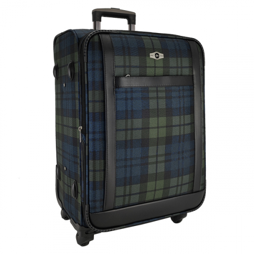 Чемодан оснащен четырьмя двойными колесами с прорезиненной поверхностью, которые вращаются на 360 градусов.