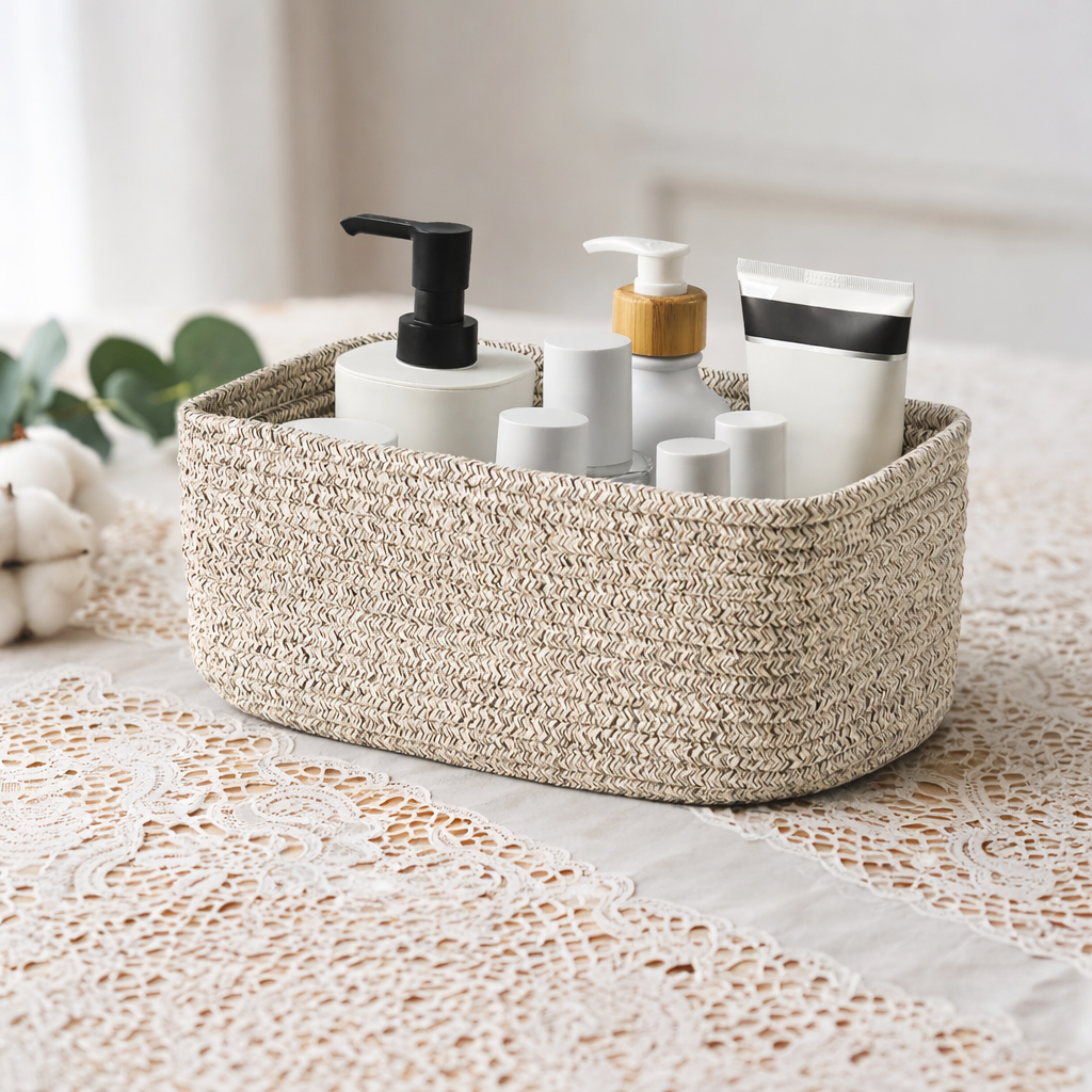 Декоративные плетеные корзинки из хлопка для хранения любых небольших предметов: игрушек, косметики, книг, лекарств, белья и тд и тп.
