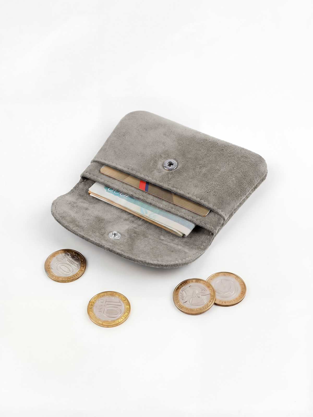 • Два отделения для купюр/карт/мелочи