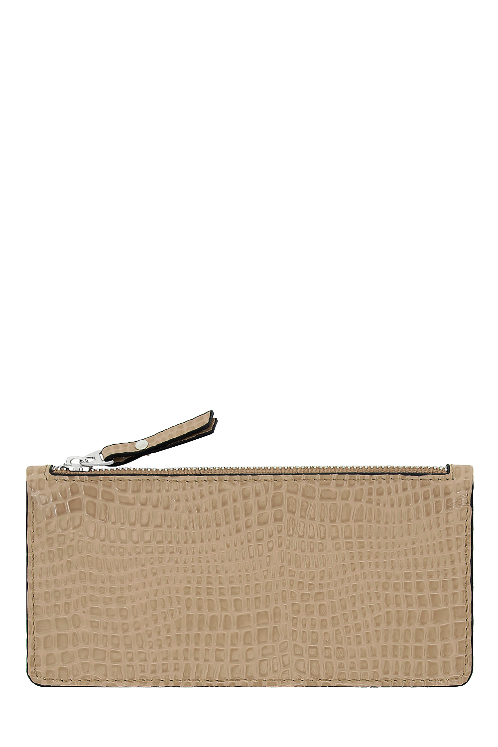 Кошелек c одним отделением на молнии. Основное отделение на молнии и в него помещаются купюры в развернутом виде, документы на машину или смартфон. Снаружи есть открытый кармашек для карт и визиток. 19,5х10