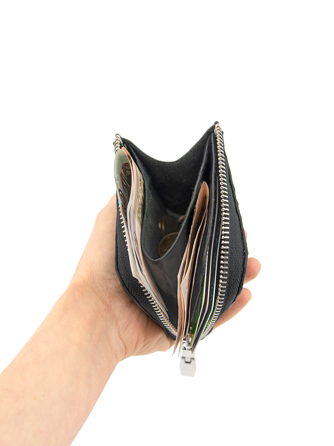 Портмоне-кардхолдер ручной работы. Прошит вощеной нитью. Застегивается на металлическую молнию, имеет внутри отделения для банковских карт, денежных купюр и мелочи. Без подкладки.