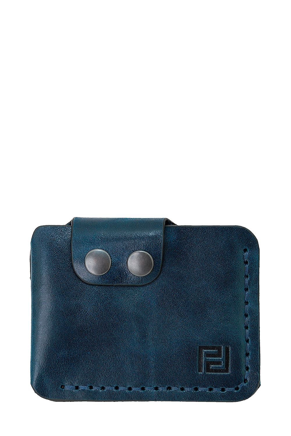 Портмоне-кардхолдер ручной работы. Прошит вощеной нитью. Застегивается на две кнопки, имеет три отделения для банковских карт и денежных купюр. Без подкладки.