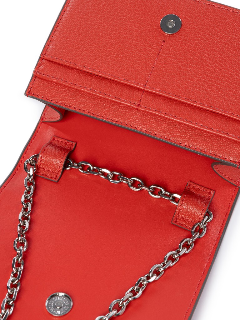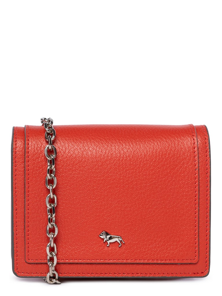 Женский органайзер торговой марки Labbra из натуральной кожи. Модель закрывается клапаном на магнитную кнопку. Содержит внутри один отдел, под клапаном имеются четыре кармашка для пластиковых карт. Длина металлического наплечного ремня-цепочки - 103 см., ширина - 1 см. Модель не имеет ножки на дне. Не вмещает формат А4.