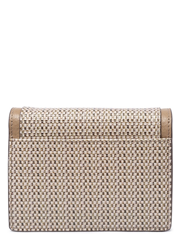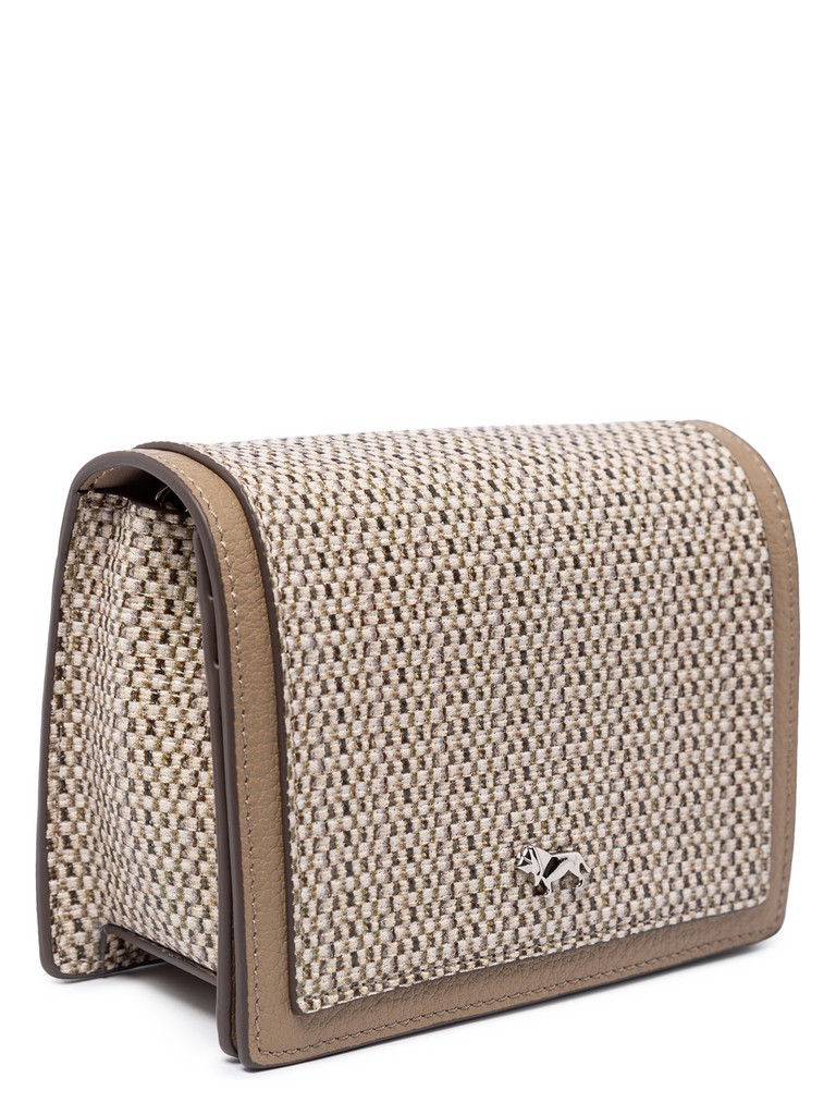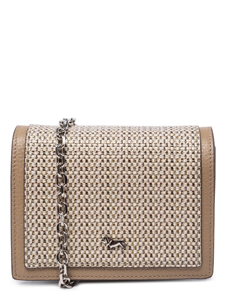Женский органайзер торговой марки Labbra из натуральной кожи. Принт изделия отражает мировой тренд на натуральность и природные мотивы. Он нанесен на лицевую сторону натуральной кожи с использованием сеточной технологии, создавая эффект ткани из натурального льна. Тиснение подчеркивает текстуру, усиливая реалистичность рисунка. Модель закрывается клапаном на магнитную кнопку. Содержит внутри один отдел, под клапаном имеются четыре кармашка для пластиковых карт. Длина металлического наплечного ремня-цепочки - 103 см., ширина - 1 см. Модель не имеет ножки на дне. Не вмещает формат А4.