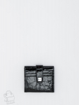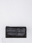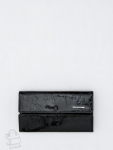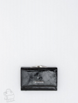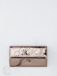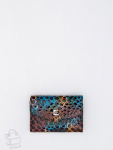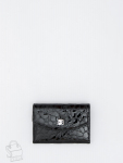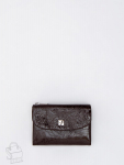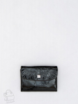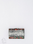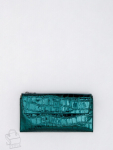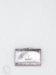 Кошелек женский из натуральной кожи. Модель раскладывается пополам, внутри открытый отдел под купюры, одиннадцать карманов для визиток и пластиковых карт, карман под клапаном. Снаружи клапан на магните и карман на молнии. Фурнитура блестящее серебро.