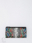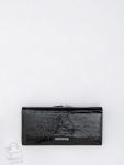 Кошелек женский из натуральной лаковой кожи. Модель раскладывается пополам, внутри открытый отдел под купюры, четыре потайных кармана, семь карманов для визиток и пластиковых карт. Снаружи клапан на магните и два кармана на молнии. Фурнитура блестящее серебро.