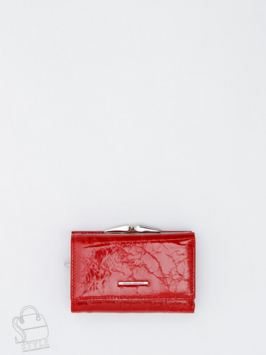 Кошелек складывается пополам, закрывается на кнопку.