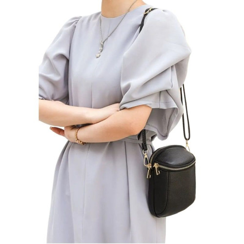 Внутри: два самостоятельных отделения на молнии, в которые поместятся телефон стандартных размеров, документы и различные необходимые мелочи. В комплекте удлинённый отстёгиваемый кожаный ремень.