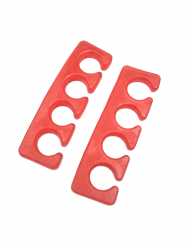 Разделители помогают увеличить расстояние между пальцами для более комфортной работы при проведении процедуры педикюра. Аксессуар предотвращает смазывание и растекание покрытия во время нанесения на ногти или в процессе сушки.