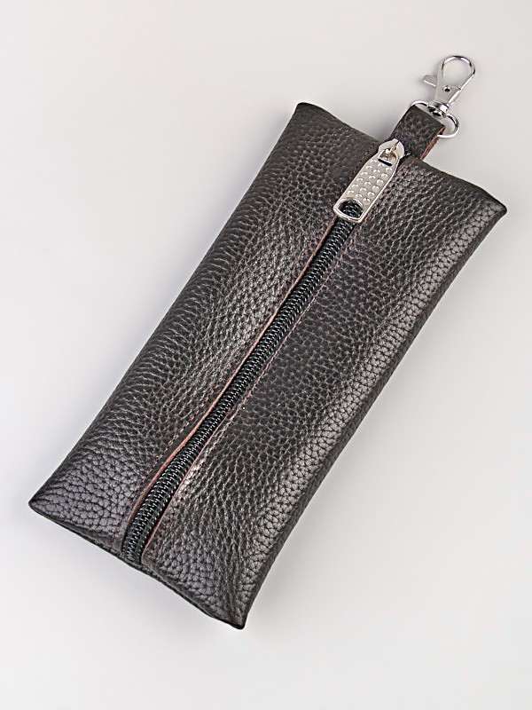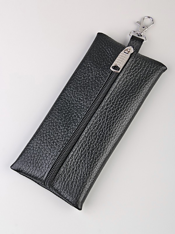 Ключница закрывается на молнию, внутри находится основное отделение и 1 кольцо для ключей.