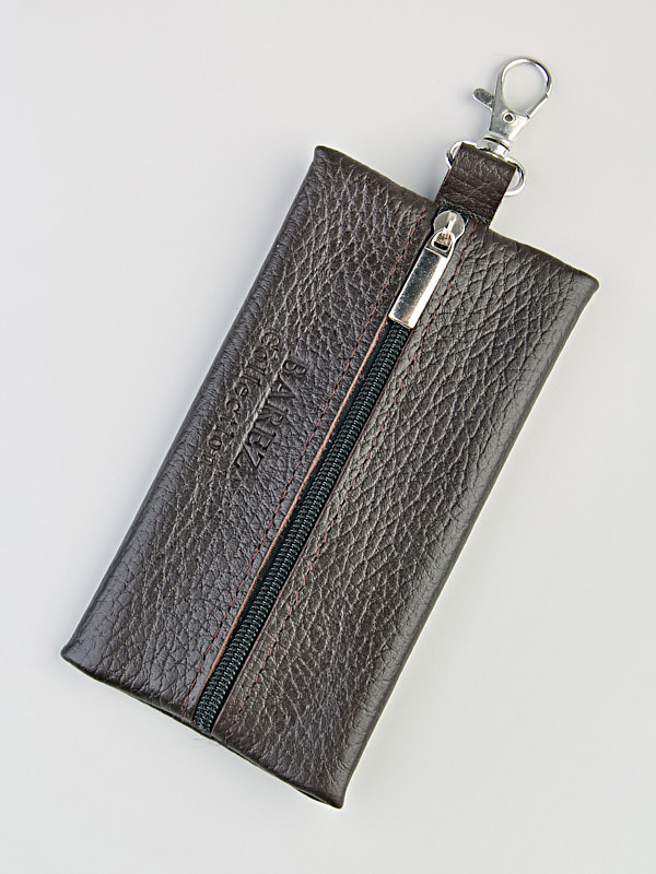 Ключница выполнена из натуральной кожи, имеет одно основное отделение на молнии. Застёжка-молния открывает доступ к металлическому кольцу на кожаной петле для крепления ключей. На внешней части кожаной ключницы располагается металлический карабин - он позволяет носить ключницу не только в кармане или сумке, но и как брелок на шлёвке брюк или джинсов. Послужит удобным аксессуаром на каждый день.