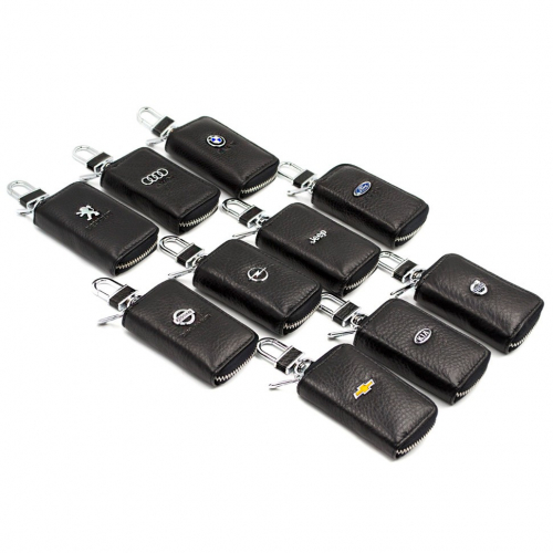 Ключница на молнии из натуральной кожи с карабином и кольцом под ключи.